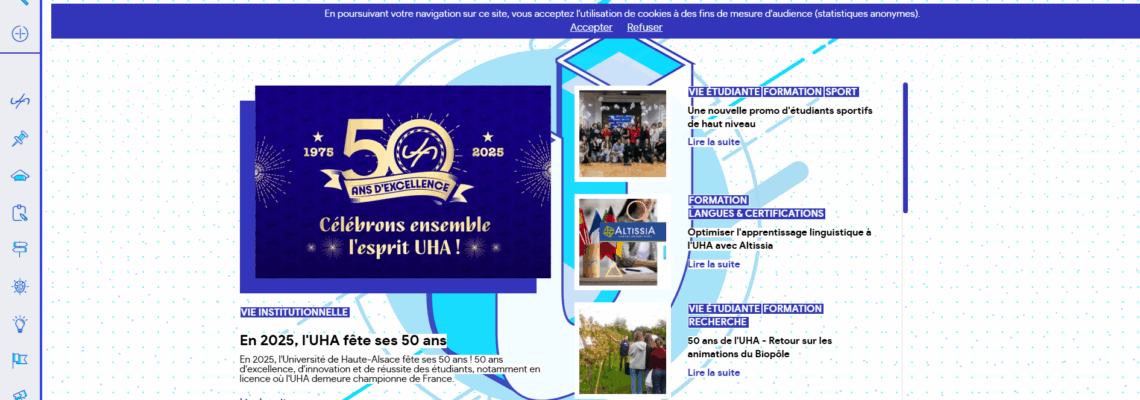 L'Université de HauteAlsace propose plus de 130 formations supérieures à Mulhouse ou à Colmar DUT, Licences, Licences professionnelles, Masters, Doctorats et Diplômes d'écoles d'ingénieurs.